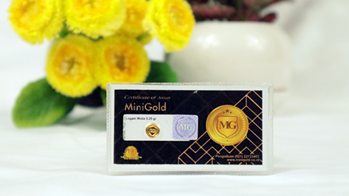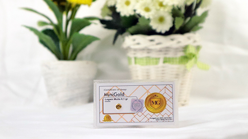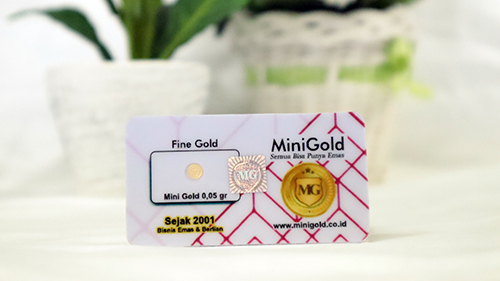 Logam mulia minigold adalah emas 24 karat yang bersertifikat resmi melalui uji lab Sucofindo dan juga G-Lab pegadaian, tersedia dengan ukuran mulai dari 0.05 gram, 0.1 gram, 0.25 gram, dan 0.5 gram.